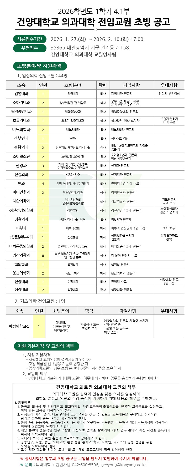 | 작성자 | 의과대학 교원인사팀 | 등록일 | 2026-01-27 | 조회 | 543 |