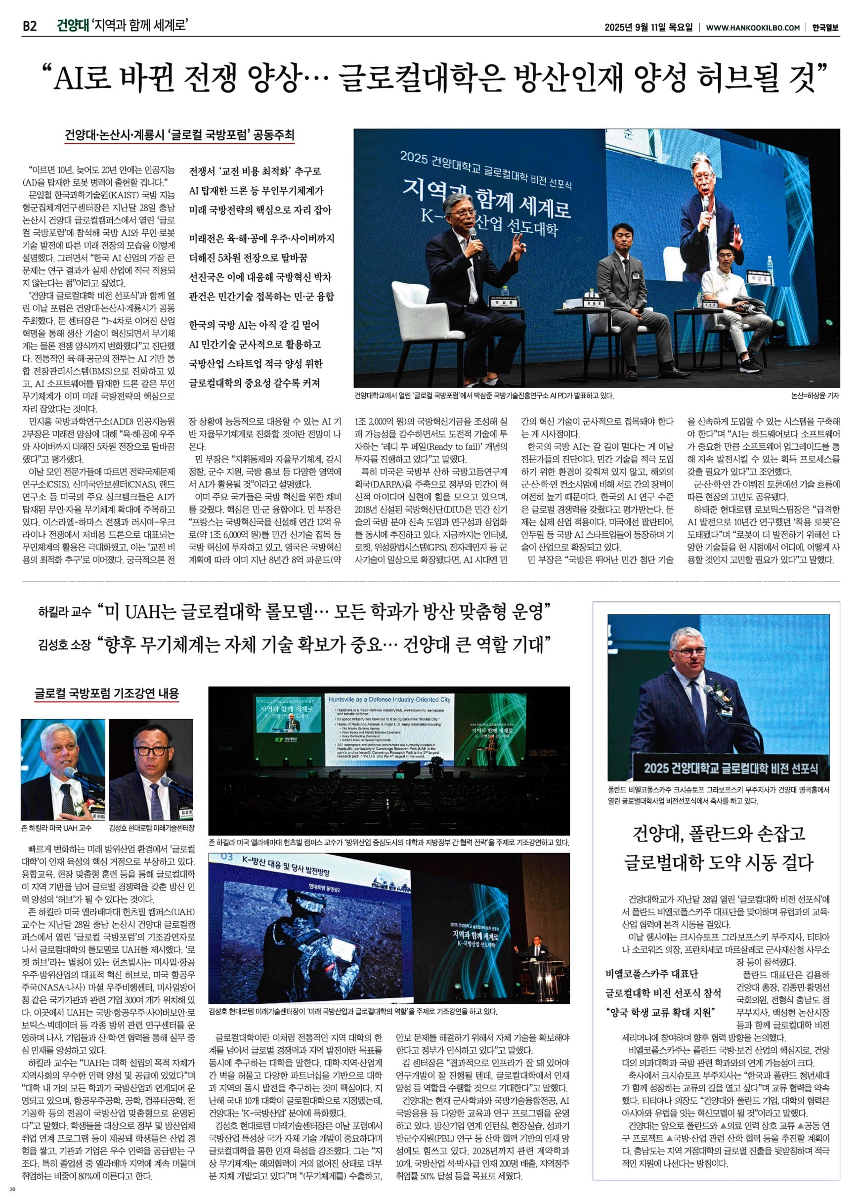 | 제목 | AI로 바뀐 전쟁 양상...글로컬대학은 방산인재 양성 허브될 것(2025.09.11.) | ||||